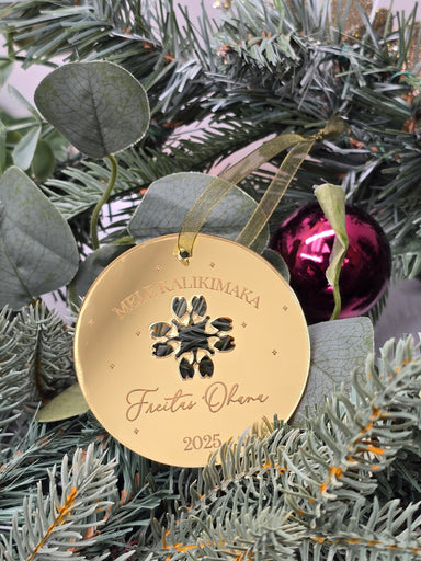 Round Ornaments are 3" circlesPlease fill out drop-downs to choose:1. Color Choice2. Saying Type*Mele Kalikimaka has a kalo quilt cutout, Merry Chr...