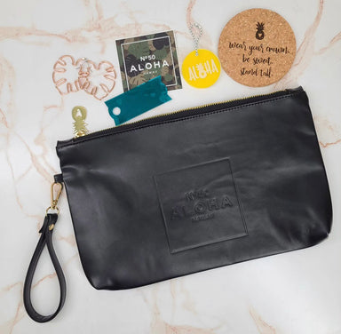 Zippered premium smooth faux leather (all over print is a pebbled faux leather) with wristlet with customized zipper pull.Measures roughly 12" in l...