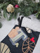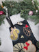 * Stocking tag hangs from top left corner of name, ornament hangs from the center*